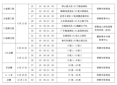 02赛事分组A组:A1 邯山、A2 复兴、A3 磁县、A4 峰峰